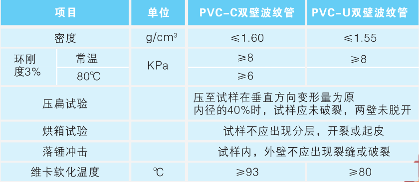 氯化聚氯乙烯(PVC-C)塑料雙壁波紋管 是以中空環形、工字鋼式截面結構,其結構設計新穎,環剛度高,有良好的承受外載荷的能力,使其表現出優良的力學性能。具有質地輕、強度高、韌性好的優點,內壁光滑、摩擦系數低、耐腐蝕等特點。產品采用擴口承插及密封圈連接,可以防止熱脹冷縮的影響。