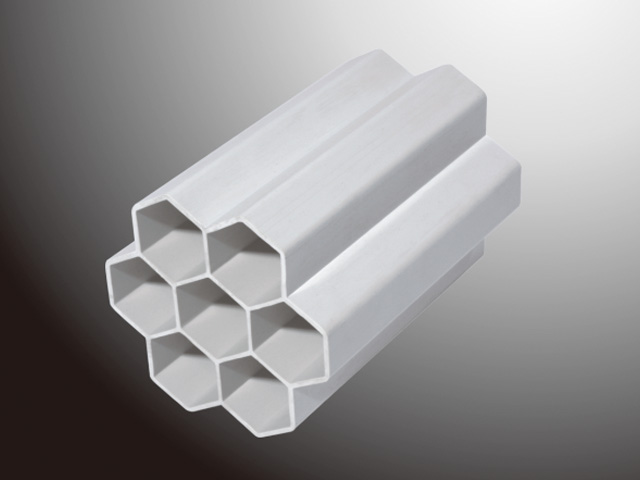 通信用PVC七孔蜂窩管采用優質耐老化改良PVC工程塑料一次擠出,抗壓強度高,獨特的多孔一體力學支撐結構,顯著提高管材的抗壓能力,使管材比普通結構塑料管材抗壓性能高10~100倍,正常情況無須做基礎或包封,防沉降,能代替鋼管安全穿越馬路,阻燃(離火即熄性好),抗腐蝕,耐老化,埋地使用壽命長達50年以上。